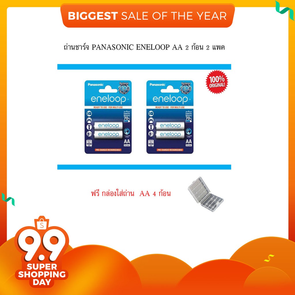 - - โปรโมชั่นพิเศษ ถ่านชาร์จ Panasonic Eneloop AA 2 ก้อน 2 แพค แถมกล่องAA รุ่นผลิต2017 made in Japan