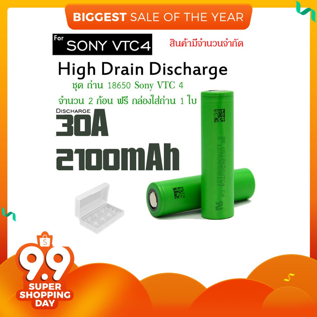 สนใจ ถ่านชาร์จ Sony 18650 VTC4 3.7V 2100 mAh 30A 2 ก้อน ของแท้ แถมกล่องใส่ถ่าน 1 ใบ เข้ามาชมกันก่อนได้ ยังไม่ตัดสินใจซื้อไม่เป็นไรค่ะ ถ่านชาร์จ Sony 18650 VTC4 3.7V 2100 mAh 30A 2 ก้อน ของแท้ แถมกล่องใส่ถ่าน 1 ใบ ตัวนี้ มาลองดูกัน เป็นตัวที่อยากแนะนำตัวหนึ่ง คุณภาพดีมากเลย ส่วนเรื่องราคาไม่ต้องพูดถึงกันเลย ถูกสุดสุดเลย ไม่เคยมีที่ไหน ลดแล้วลดอีก ไม่ได้มีกันบ่อยๆ เราไม่อยากให้คุณลูกค้าพลาดโอกาสนี้ไปเลย ถึงสินค้าเราจะราคาถูก แต่ก็เป็นของแท้นะขอบอก รับรองไม่มีการคดโกงผู้บริโภคอย่างแน่นอนค่ะ ไม่ต้องกลัวโดนโกง กันนะค่ะ เรื่องการจัดส่งนั้นหรอ ได้รับสินค้าแน่นอน เข้าซื้อกันเลยวันนี้ ไม่ลองไม่รู้นะค่ะ