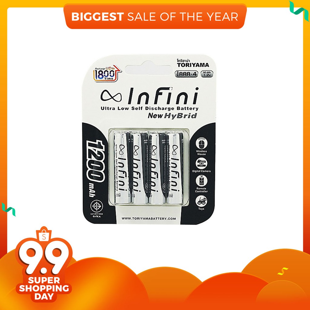 - ควรเช็คราคา ถ่านชาร์จ TORIYAMA Infini AAA 1200 mAh ชาร์จ 1800 ครั้ง จำนวน 4 ก้อน และค่าธรรมเนียมอื่นๆ เพื่อที่คุณจะได้รับ ราคาที่ดีสุด