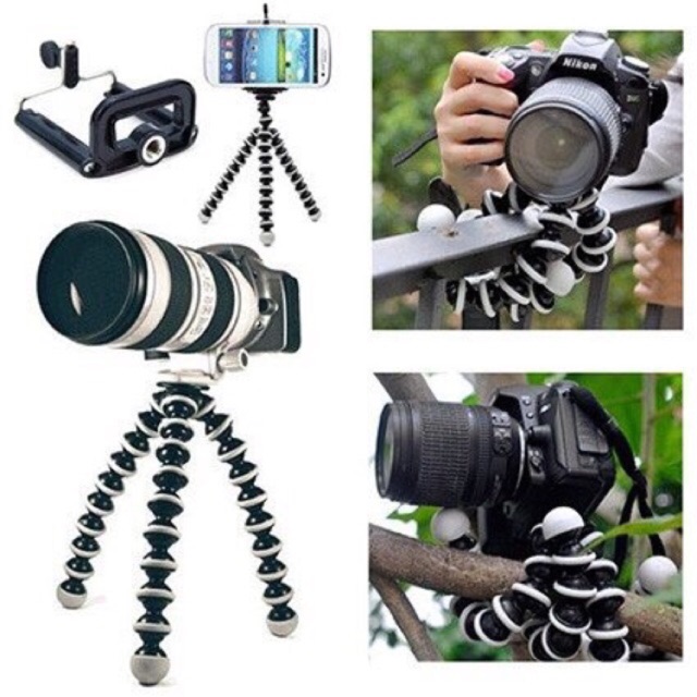 ขาตั้งกล้องหนวดปลาหมึก (Gorillapod) พร้อมตัวยึด เพื่อใช้กับมือถือ มี 3 ขนาด เล็ก/กลาง/ใหญ่ ใช้ได้ทั้งกล้อง และ โทรศัพท์มือถือทั่วไป หมุนได้ 360 องศา สำหรับขนาดใหญ่ จะมี ตัวสวมเกลียวน็อต แถมให้ด้วยครับ ขาตั้งกล้อง ขาตั้งปลาหมึก ขาตั้งหนวดปลาหมึก ขาตั้งมือถือ