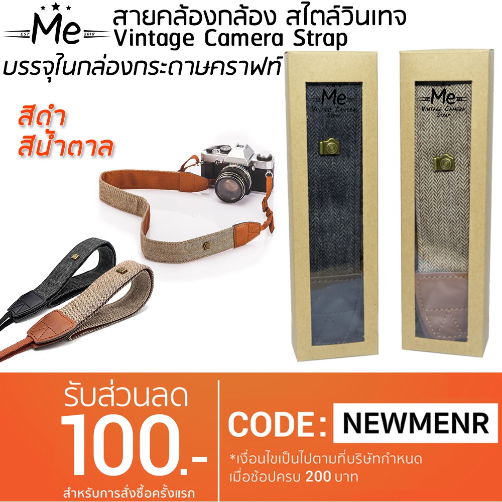 ราคาโปรโมชั่น!! สายคล้องกล้อง สไตล์วินเทจ พร้อมกล่องกระดาษคราฟท์ .ME Vintage Camera Strapo คุ้มไปเลยสุดๆ