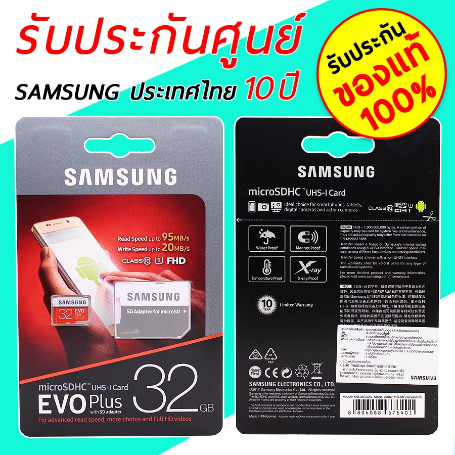 สินค้าอาจมีการเปลี่ยนแปลงราคาและโปรโมชั่น โปรด เช็คราคาล่าสุด เมมโมรี่ SAMSUNG 32Gb - EVO Plus microSD Card 95 MB/s ความเร็วสูง เหมาะสำหรับใส่ มือถือ กล้อง ประกัน >ที่นี่