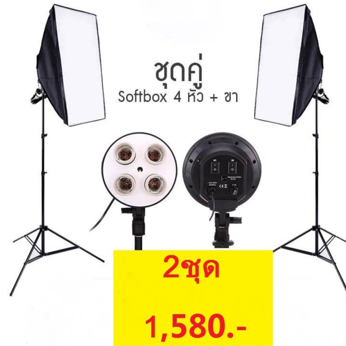 ขายลดราคา Softbox ไฟต่อเนื่อง ไฟสตูดิโอถ่ายภาพ 4 หัว softbox เซ็คคู่ 2 ตัว ส่งถึงบ้าน เก็บเงินปลายทาง รอรับได้เลย
