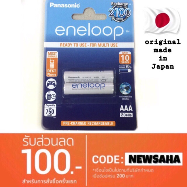 ถ่านชาร์จ Panasonic Eneloop AAA(แพ็ค2ก้อน) 1.2V 750mAh แท้100% ทนมากชาร์จได้สูงสุดกว่า 2,100ครั้ง ma เป็นสินค้าใหม่ล่าสุด อยากแนะนำมาก ลองเปรียบเทียบราคากันก่อนได้ค่ะ ราคาไม่โดน สินค้าไม่ถูกใจไม่ซื้อค่ะ ทางร้านเราถึงแม้จะขายสินค้าราคาถูก แต่ก็ไม่ใช่ของปลอมนะค่ะ ของแท้จ้า รีวิวได้จากผู้ใช้จริง ไม่มีหน้าม้า ไม่ดีไม่นำเสนอต่อ ไม่ต้องห่วงเรื่องการโดนโกงและการจัดส่งนะค่ะ รับรองว่าสินค้าส่งถึงมือท่านแน่ รีบด่วนตัดสินใจ ซื้อเลยค่ะตอนนี้