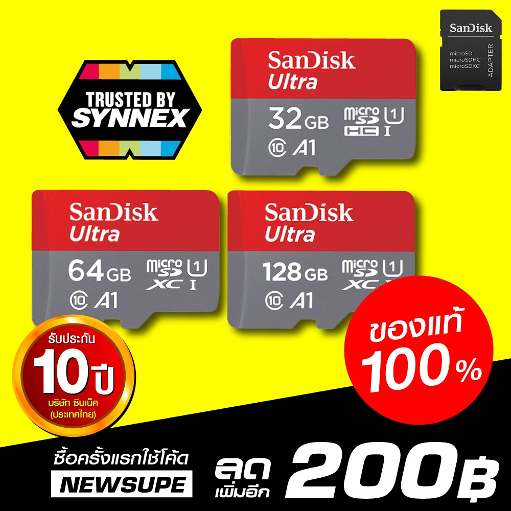 เมมโมรี่การ์ด + อแดปเตอร์ SANDISK ULTRA microSD UHS-I 16/32/64/128GB Class10 แท้ 100% (ประกันศูนย์ สามารถสั่งซื้อออนไลน์ จัดส่งสินค้ารวดเร็วทันใจ ได้รับสินค้าแน่นอน สามารถเก็บเงินปลายทางได้ ปลอดภัย มั่นใจได้สินค้า 100%